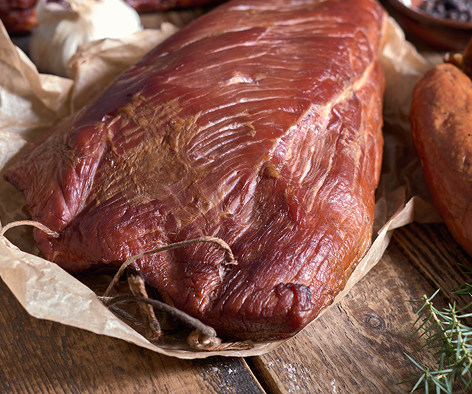 Gorący dym podkreśla charakter mięsa, a jednocześnie skraca etap obróbki bez potrzeby użycia żadnej chemii. To technika stosowana w klasycznych wędzonkach parzonych lub pieczonych nadająca im ich charakterystyczny, tradycyjny profil.