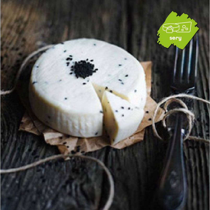 - Ręcznie wyrabiany ser z pełnego, niepasteryzowanego mleka koziego. Typ a'la Gouda z dodatkiem prażonych ziaren czarnuszki. Dojrzewa minimum 6 tygodni. Wyróżnia się maślaną konsystencją i pikantnym, ziołowym posmakiem. Krążek ok. 220g.